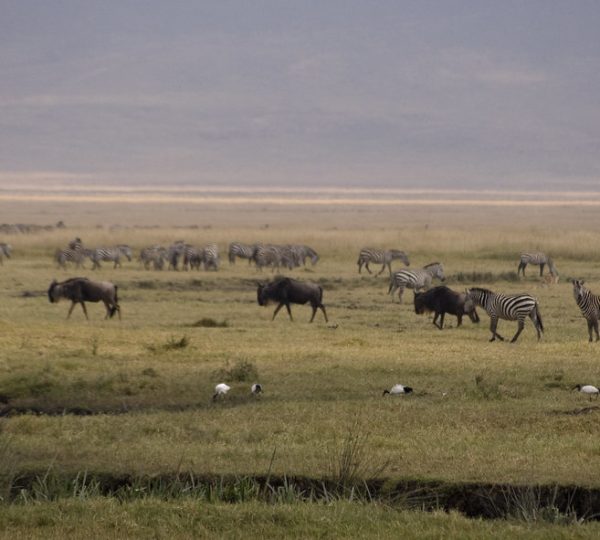 The principal attraction of the Ngorongoro Conservation Area is the Ngorongoro Crater itself -the largest inactive, intact, and unflooded volcanic caldera anywhere on Earth. Formed between two and three million years ago by the collapse of an enormous volcano, the crater plunges 610 meters (2,000 feet) in depth and encompasses an area of 260 square Kilometres (100 square miles). Often referred to as Africa’s Garden of Eden, this extraordinary natural enclosure is home to approximately 25,000 animals, including ungulates, four of the Big Five, and a wide variety of other large mammals. It is one of the finest locations in the world for encountering critically endangered species such as the black rhinoceros, the golden cat, and the African wild dog, all set within a thrillingly action-packed predatorandprey environment.